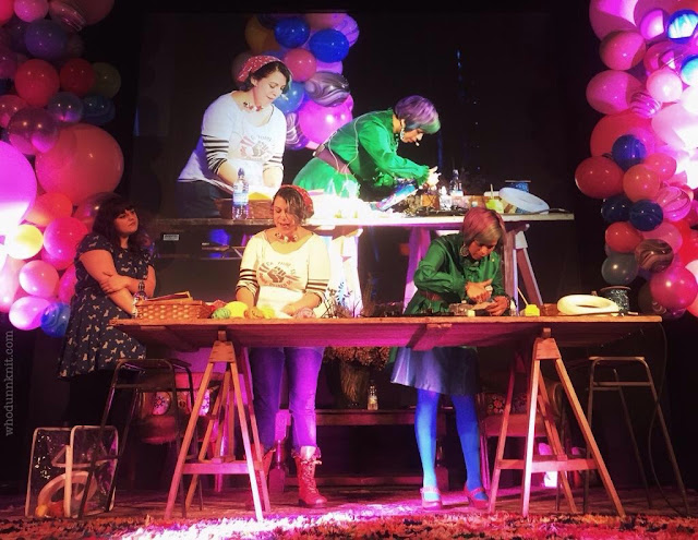 In advance of the Mash Up we were asked what materials we'd like, I opted for the stuff I love best: sparkles, spangles, glitter, confetti, sequins and lots and lots of gemstones, while Deadly Knitshade brought in yarn (obviously!)
